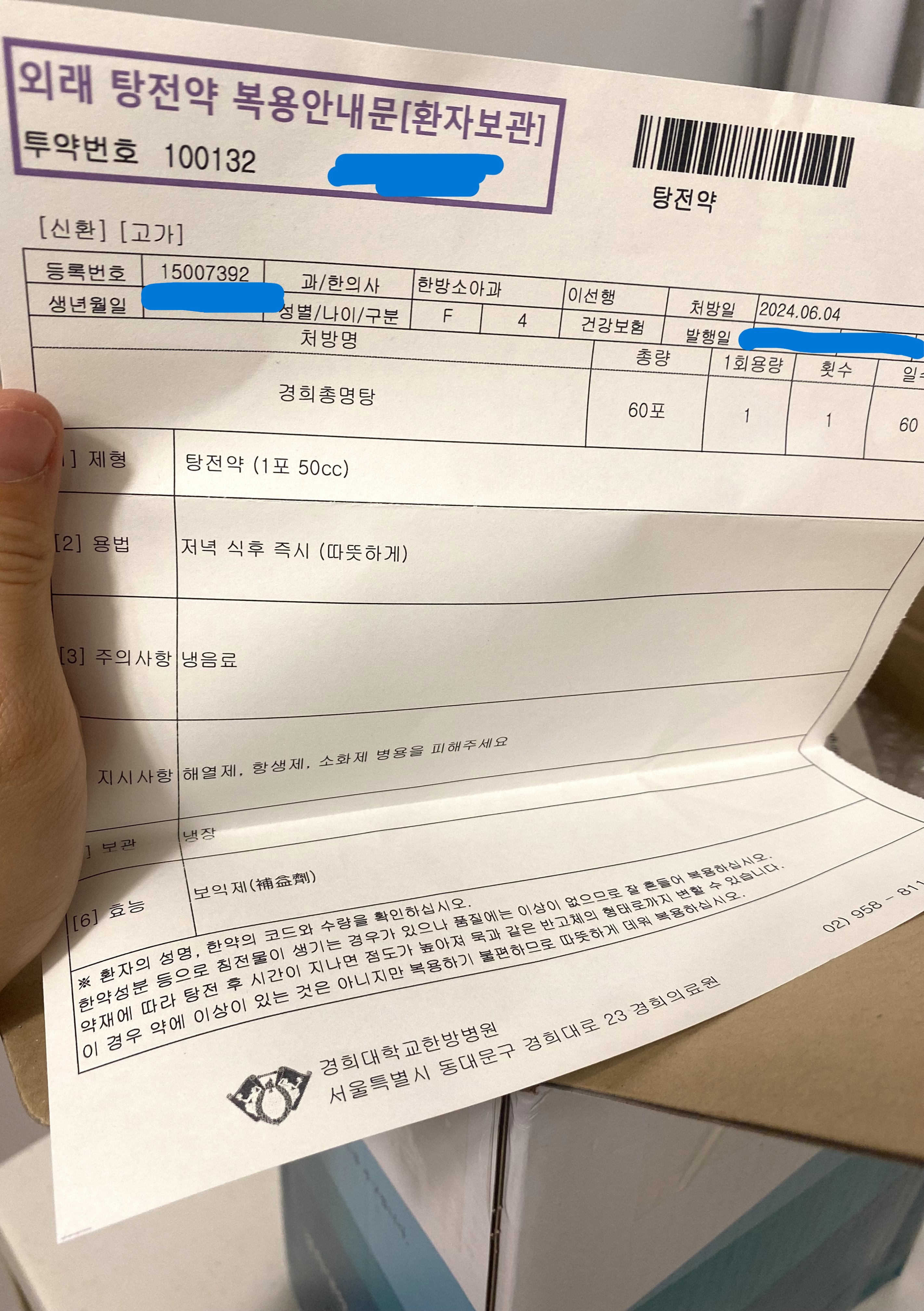 오늘은 진료 후 받은 처방전으로 받은 아이의 한약에 대한 후기를 적어보려고 합니다.