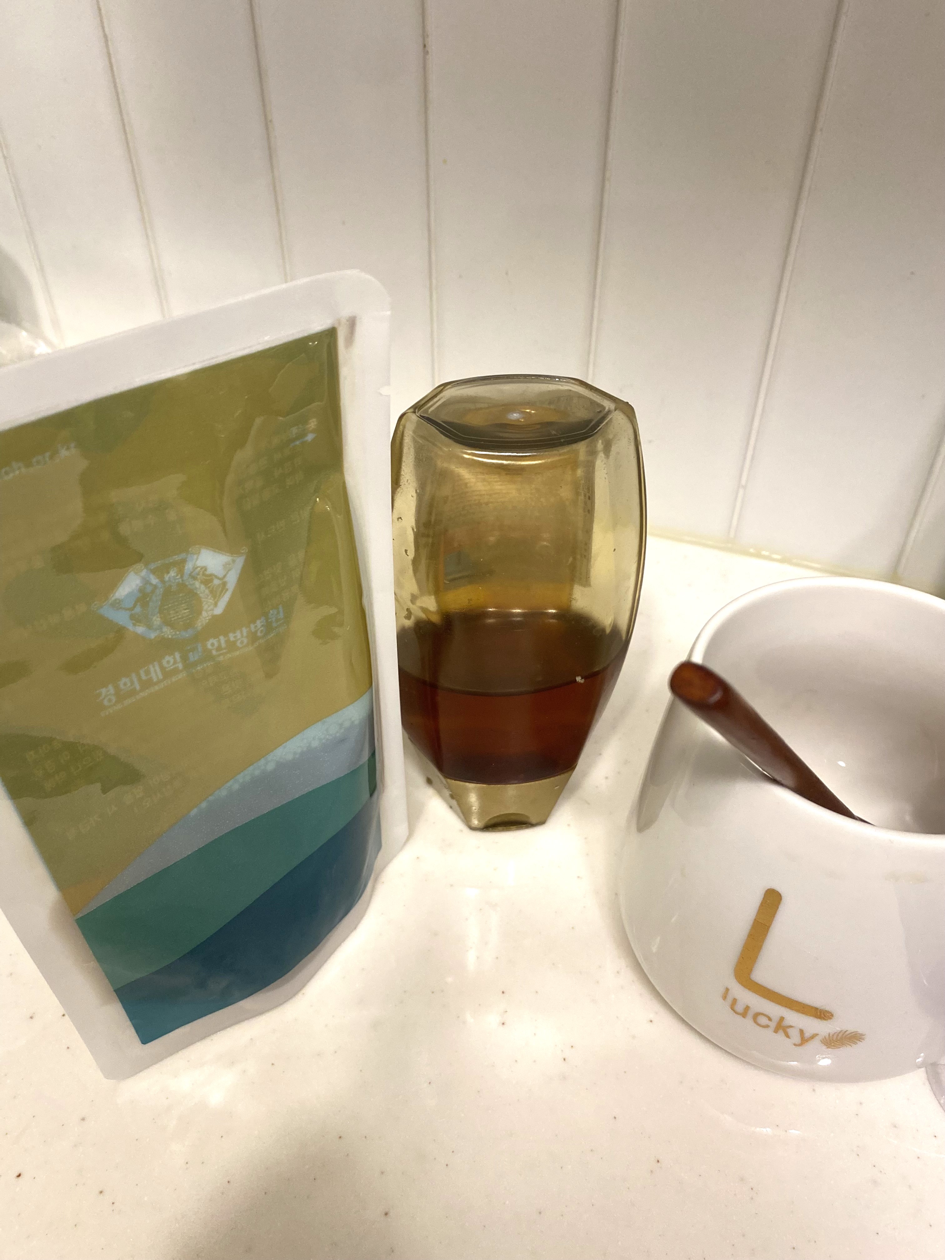 (처음 먹는 한약이기 때문에 걱정을 했는데, 다행히 꿀이나 주스 요구르트에 타서 먹여도 된다고 하셨어요.