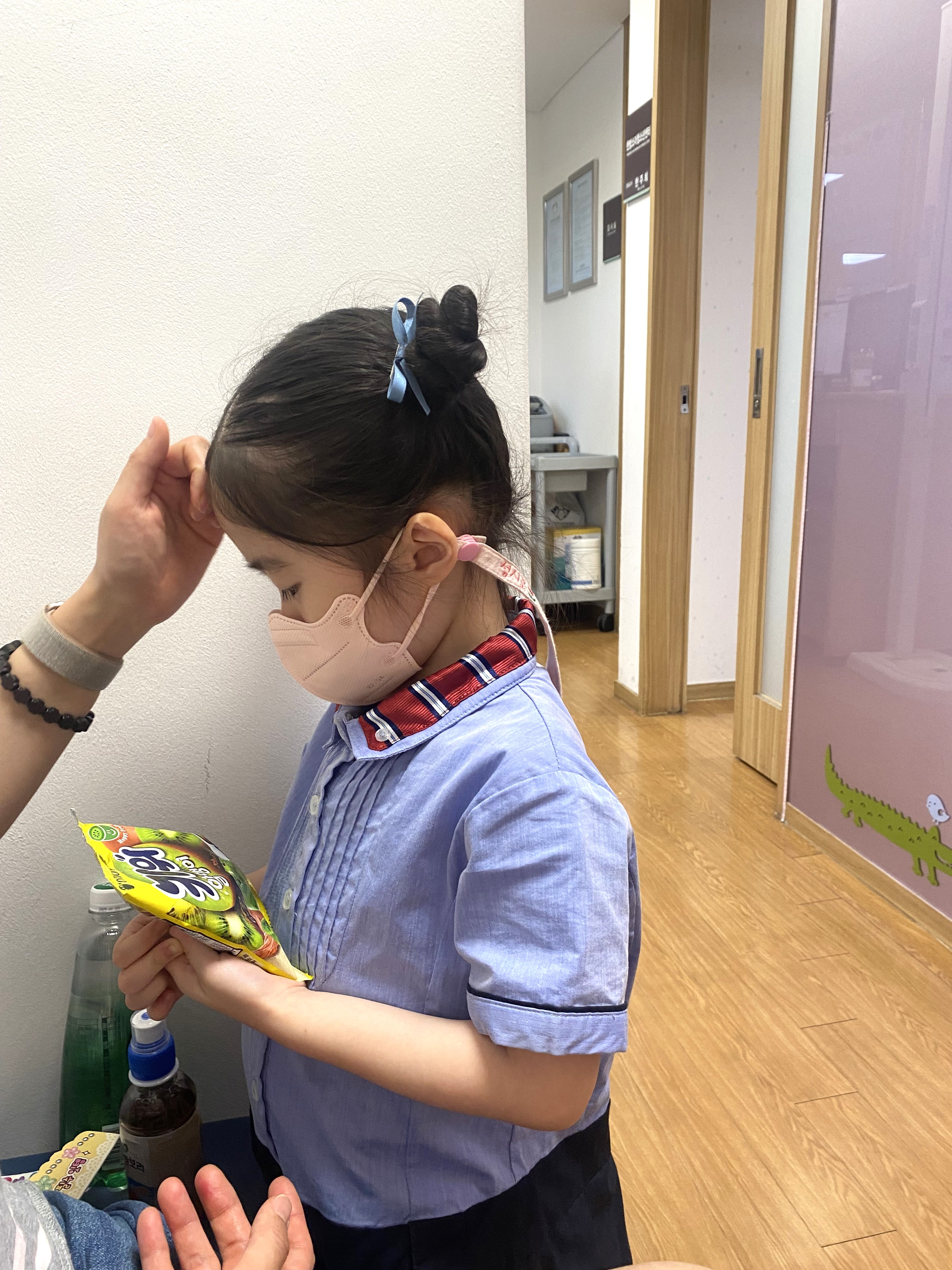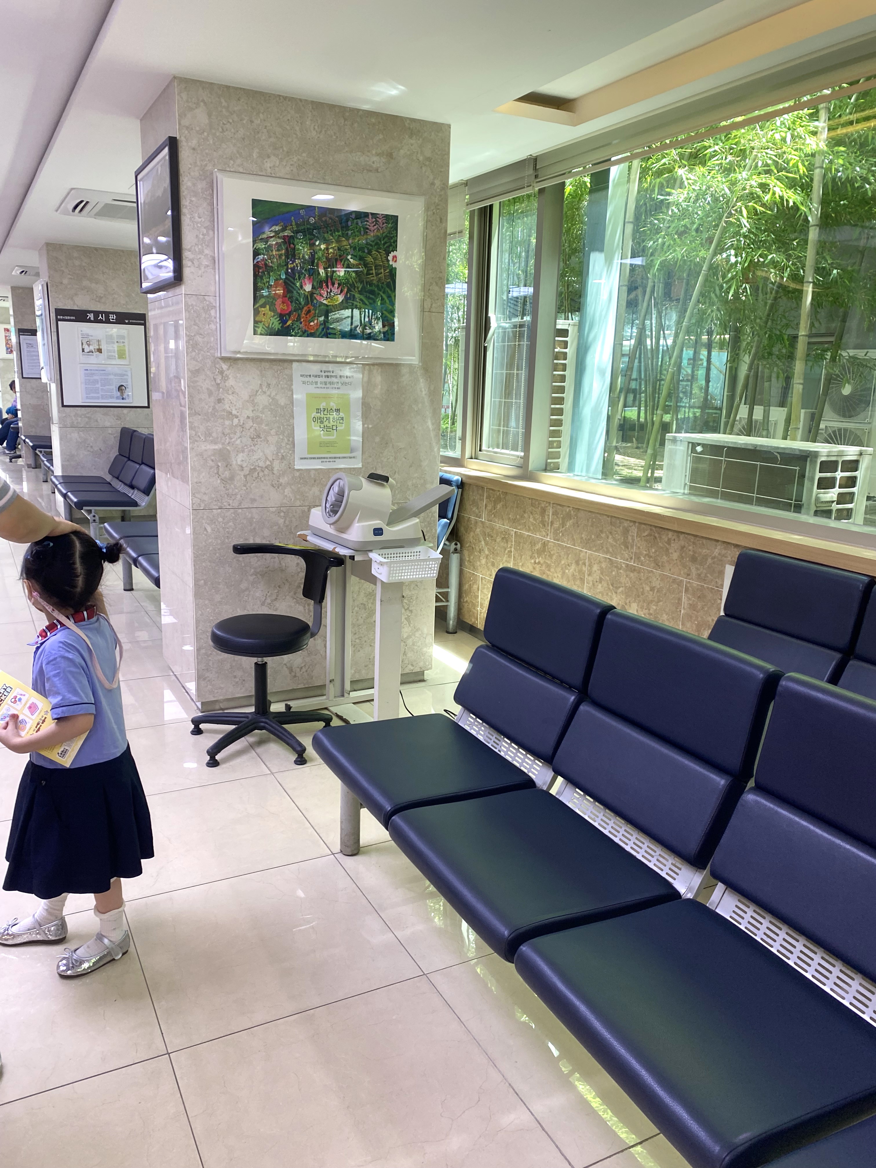 진료당일, 아이를 픽업해서 바로 병원으로 갔어요.