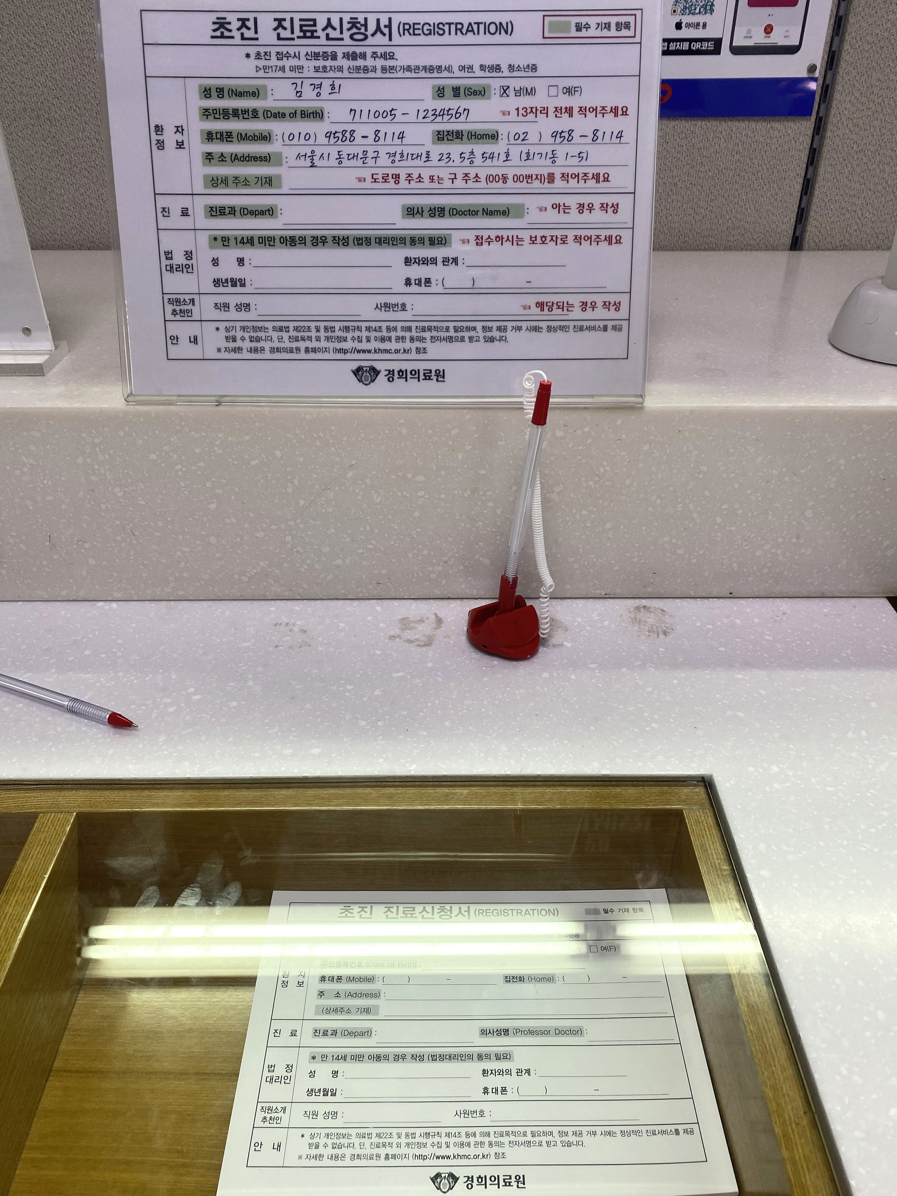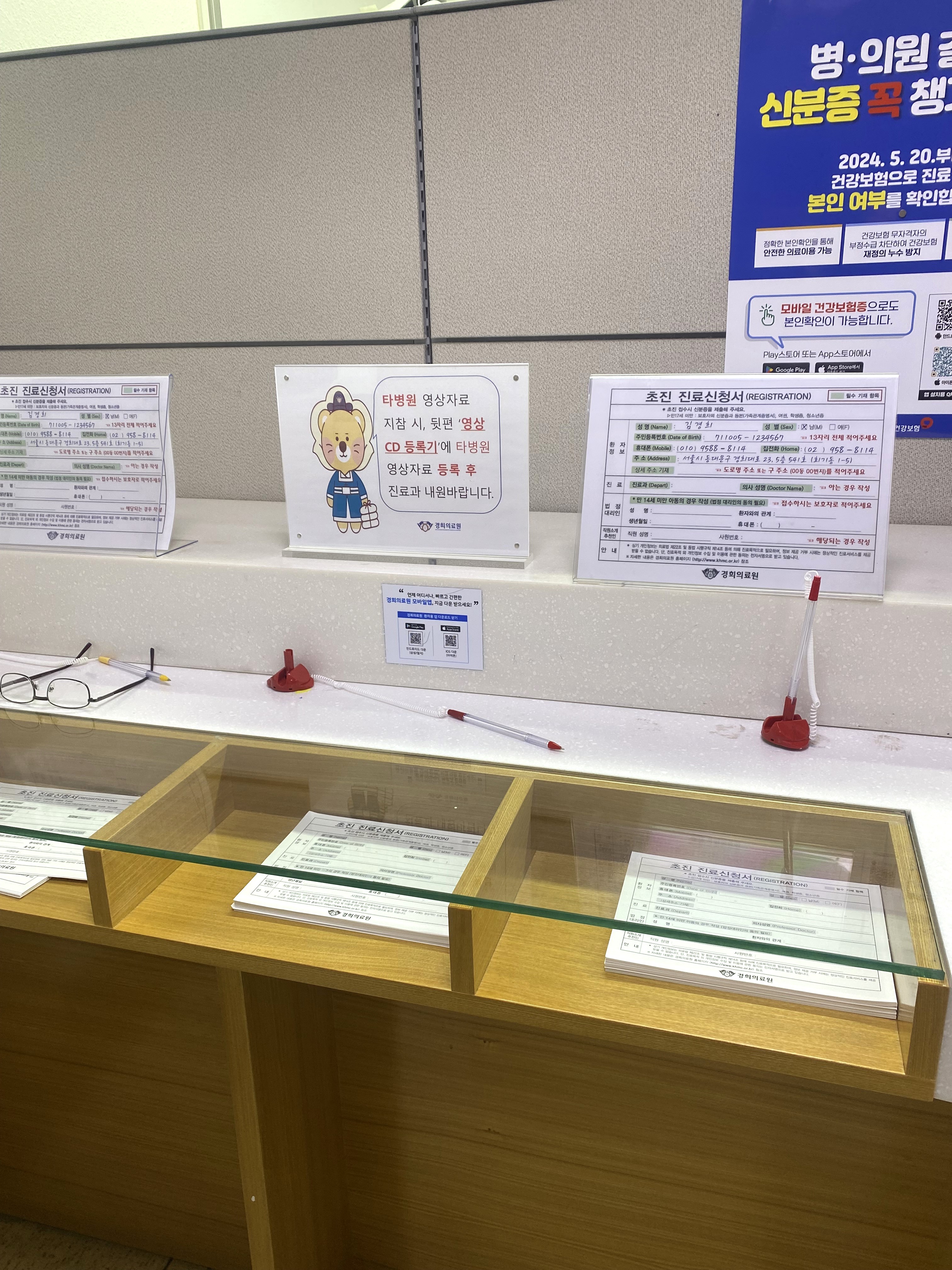 수납창구에서 초진 진료 신청서를 작성해서