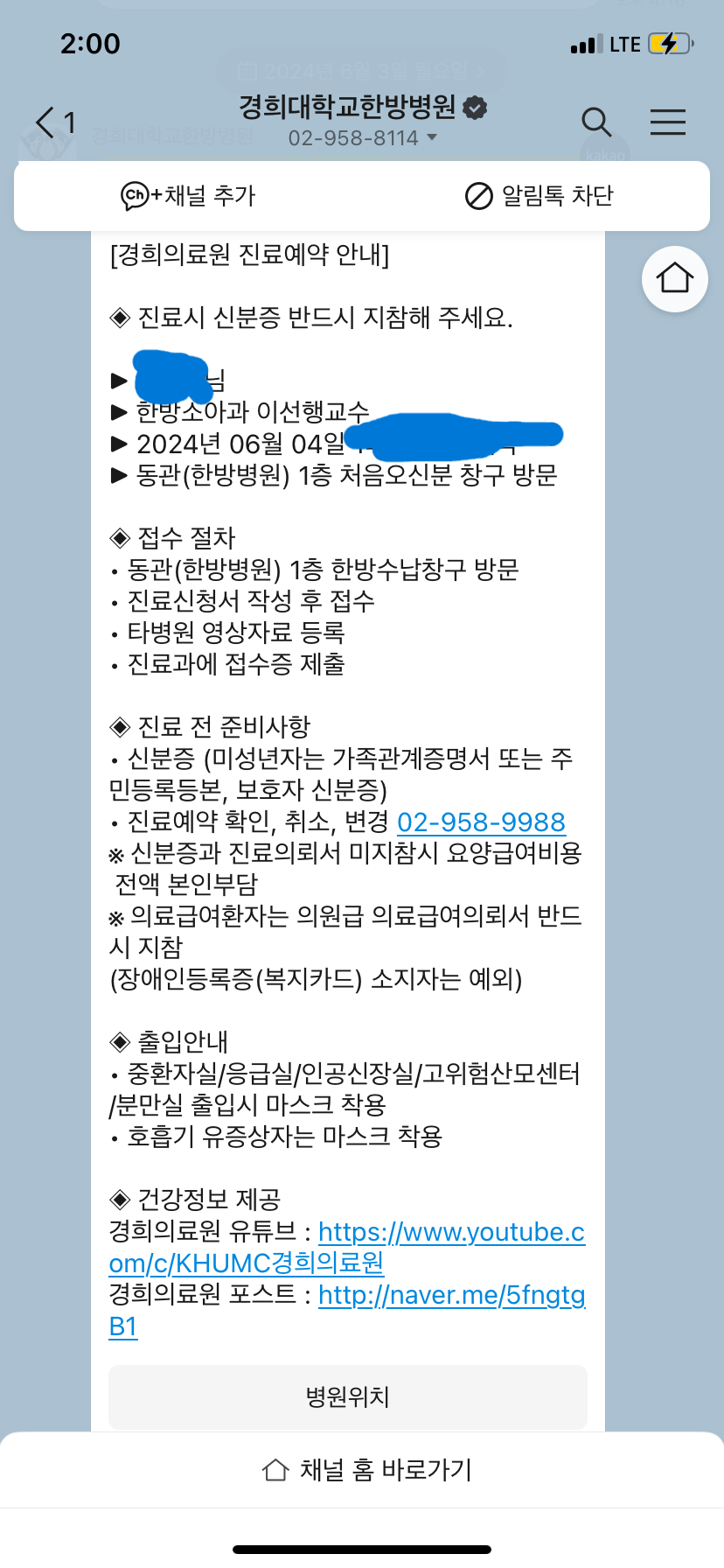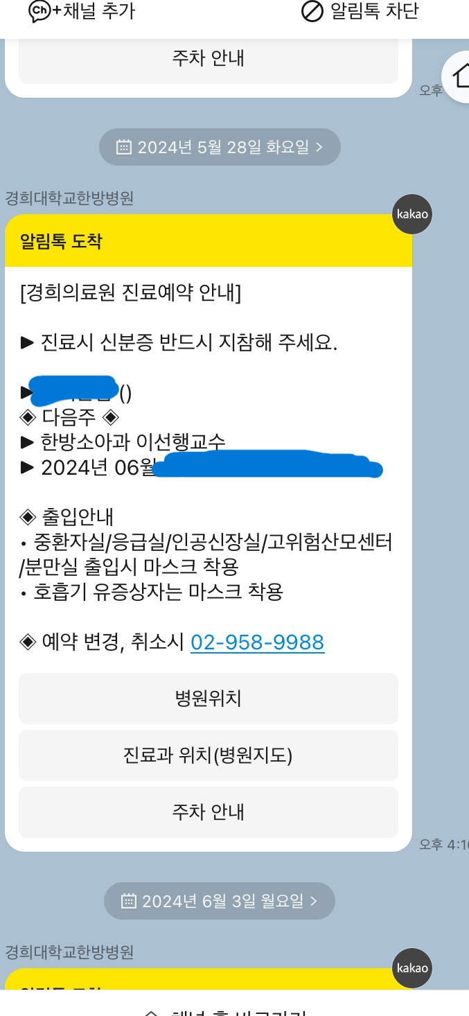아이 비염치료를 위해 경희대 한방 소아과를 예약했어요.