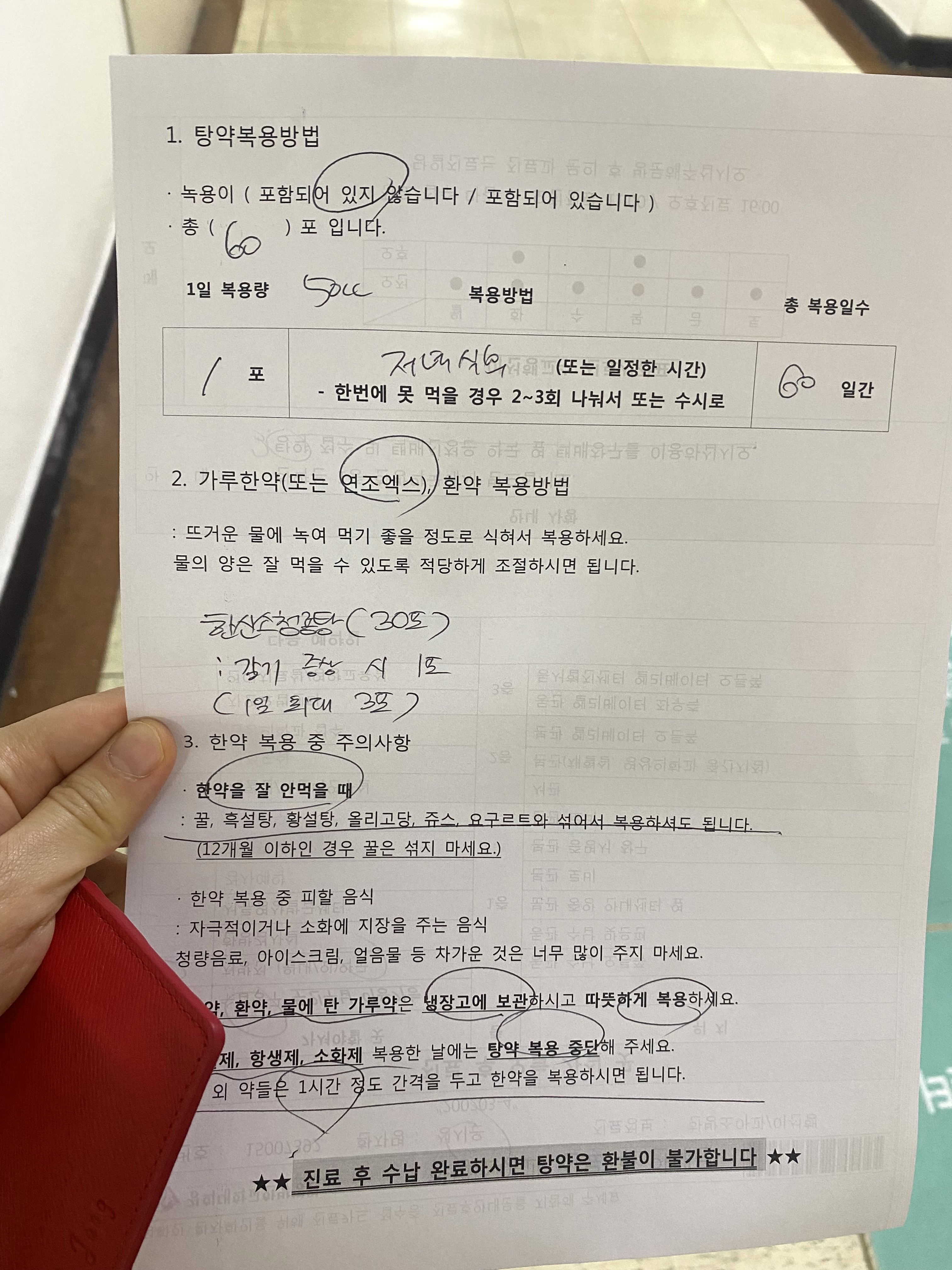 한약은 두 달 치 60포 처방받았어요. (저녁 1포)