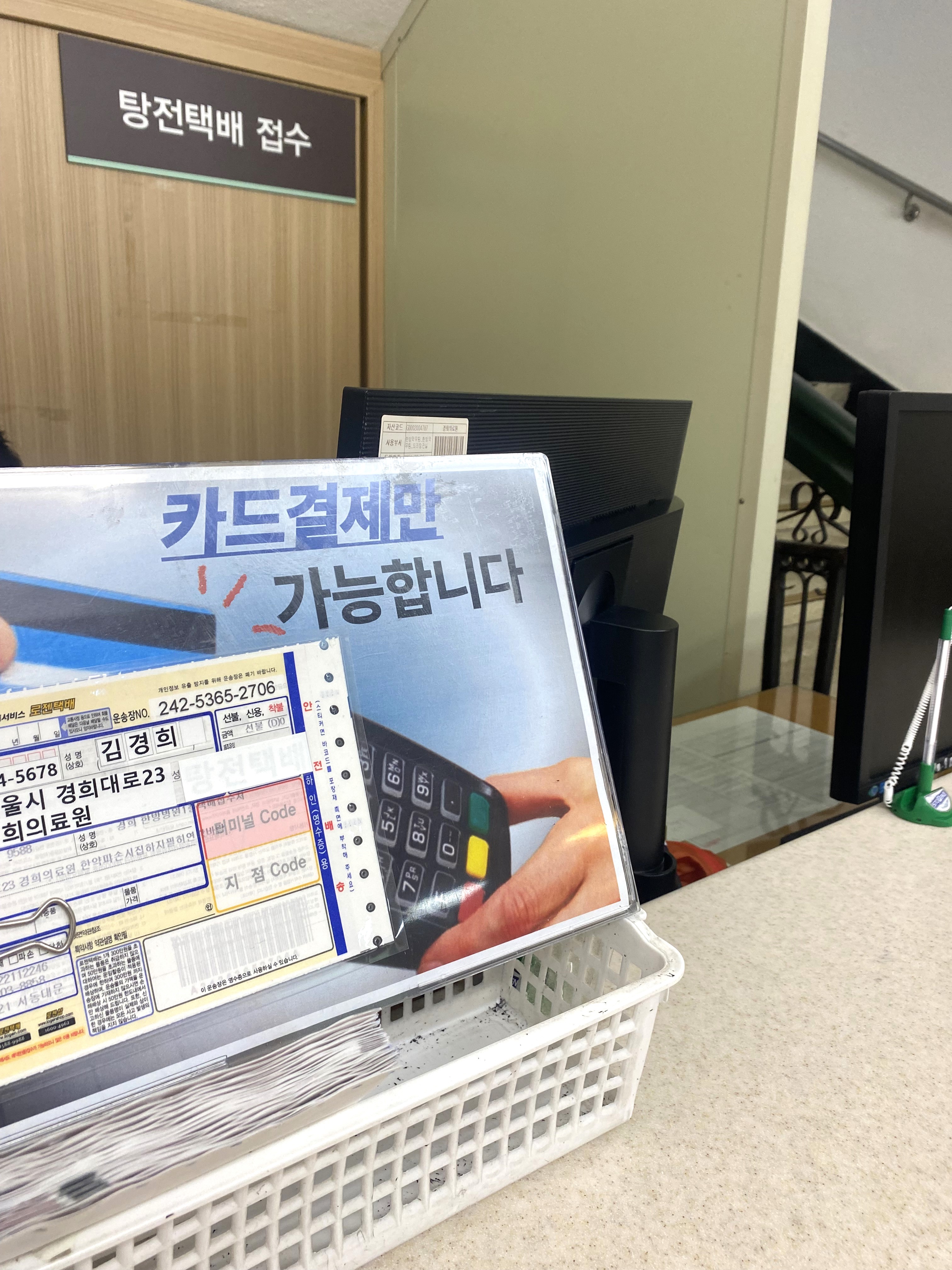 그리고 택배창구로 가서 택배 접수를 하시면 되어요.